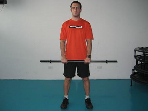 obs.: observe os braços semi-flexionados em relação a barra e os pés paralelos ao quadril.