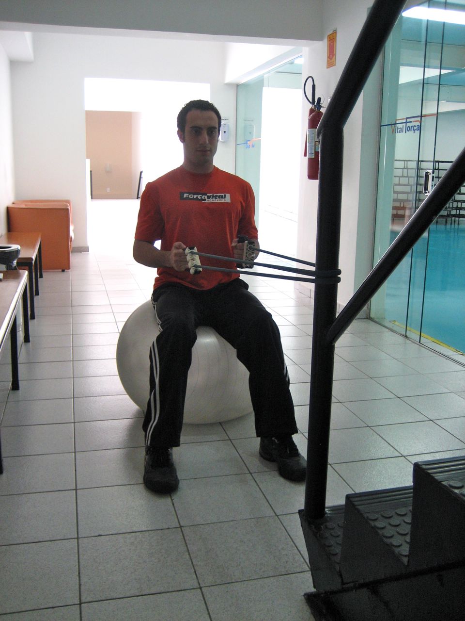 Objetivo: condicionamento e fortalecimento da região abdominal, atuando também na região do CORE (região abdominal e lombar), devido ao exercício funcional executado quando do equilíbrio na bola.