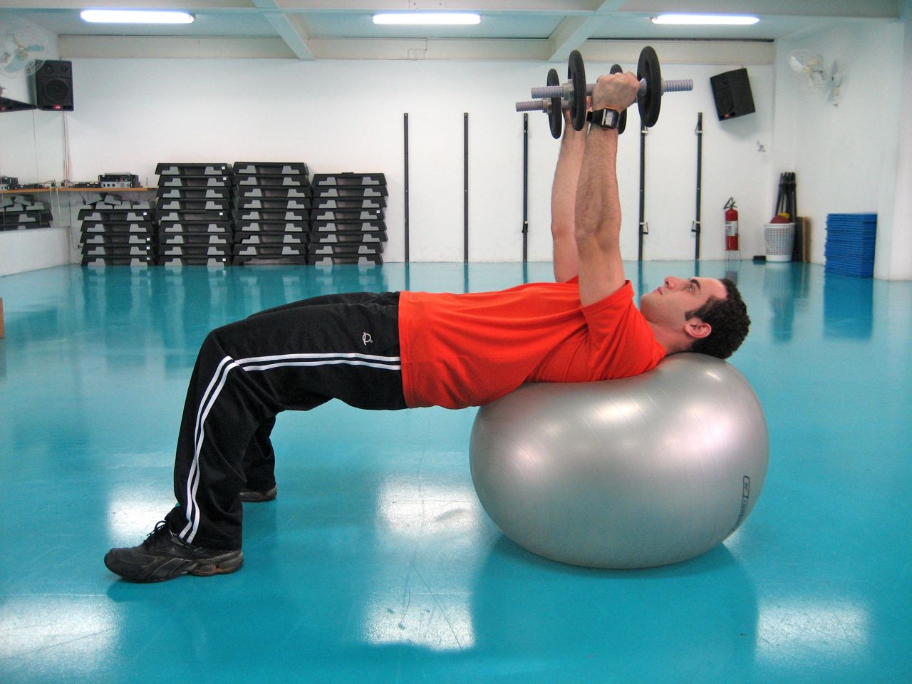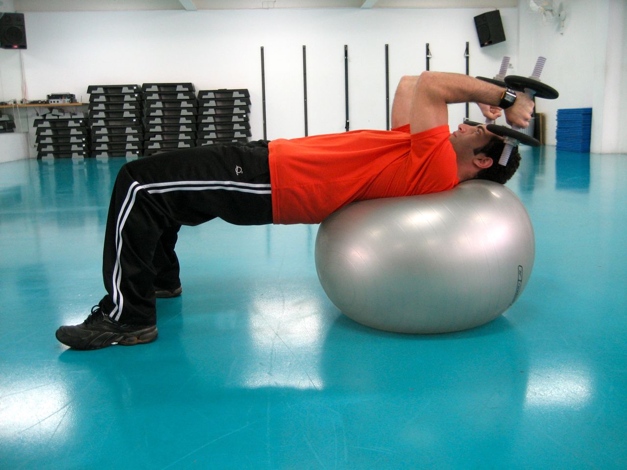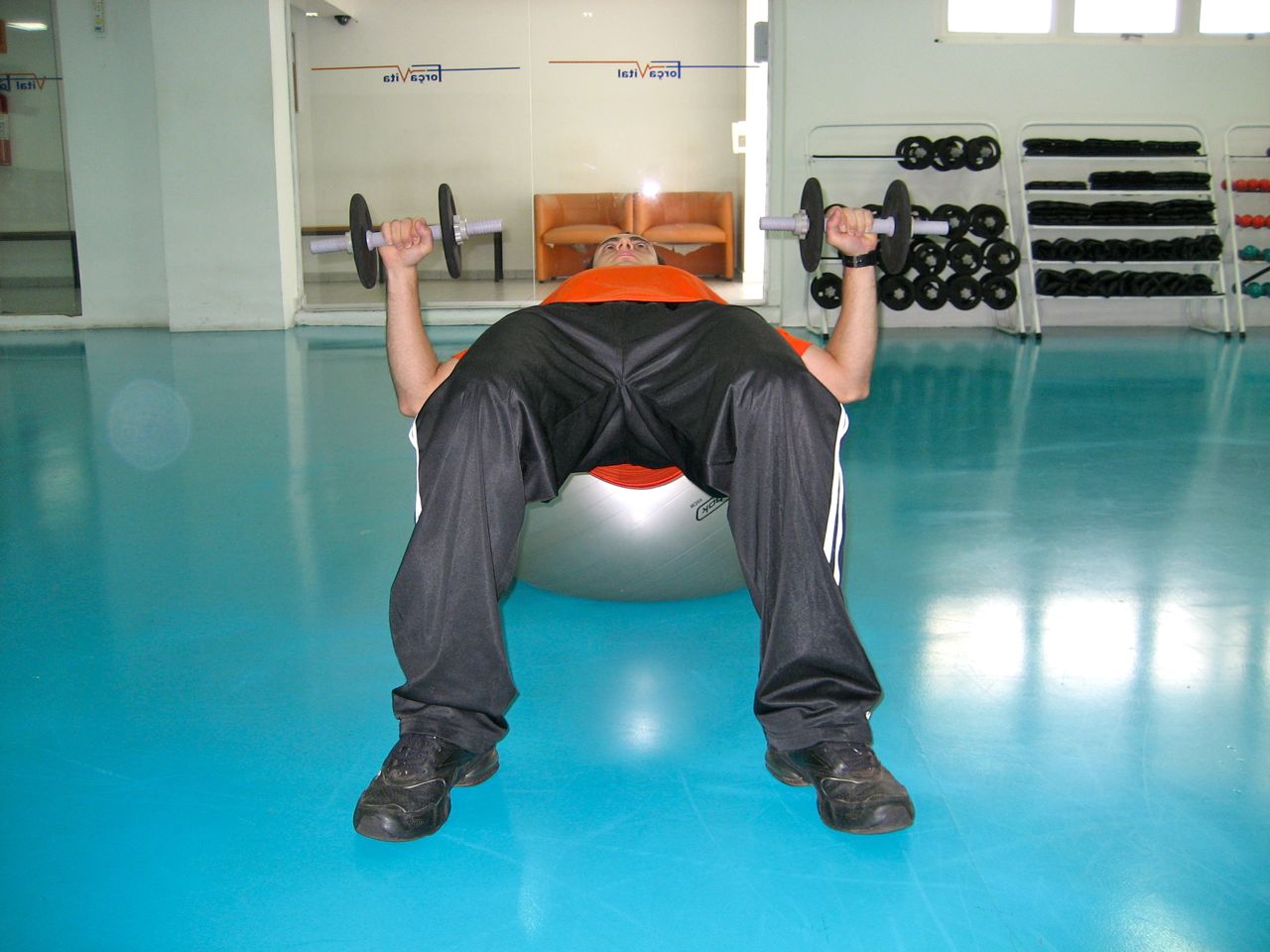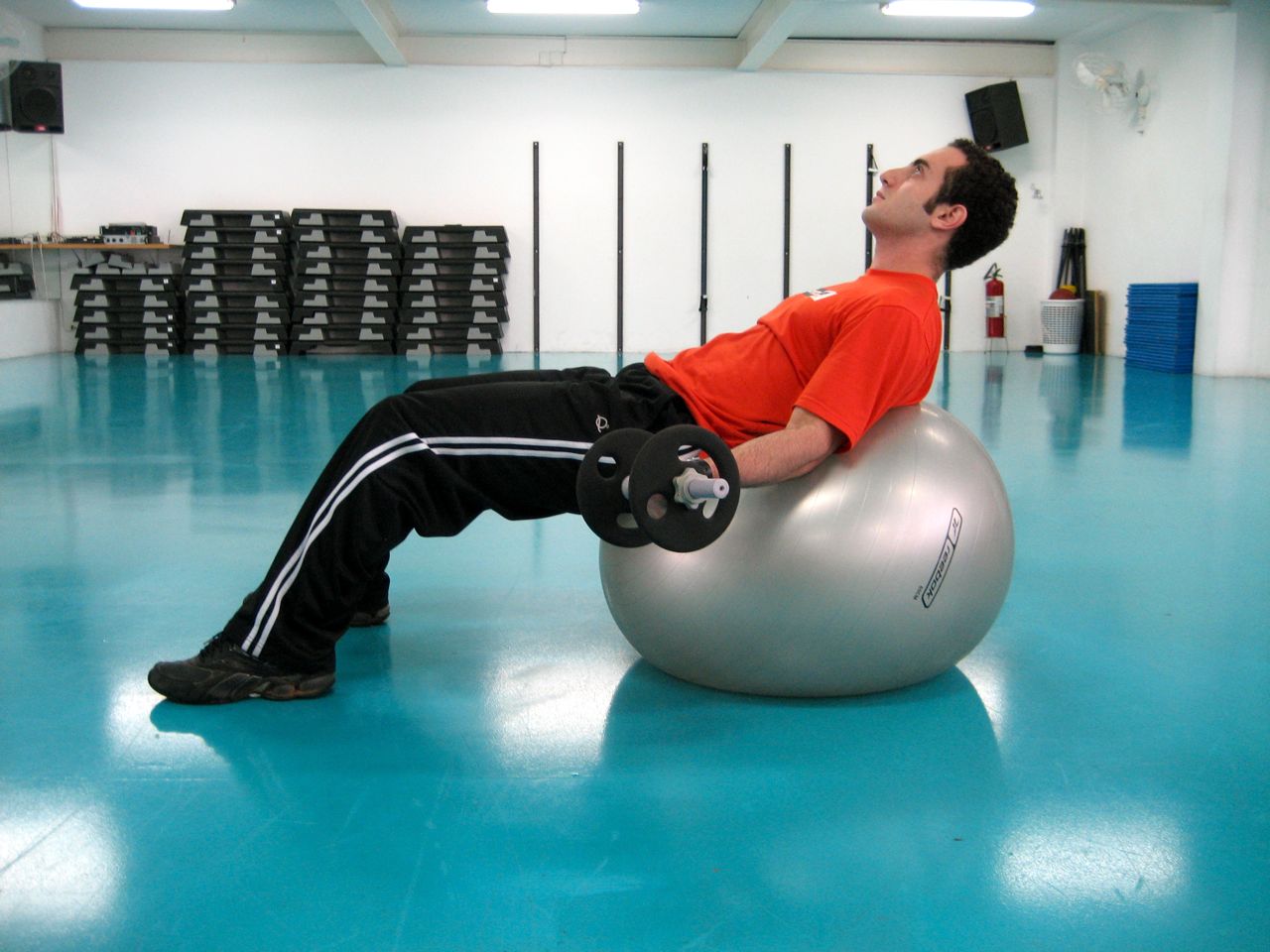 Objetivo: condicionamento e fortalecimento da região frontal do peitoral e braços, atuando também na região do CORE (região abdominal e lombar), devido ao exercício funcional executado quando do equilíbrio na bola.
