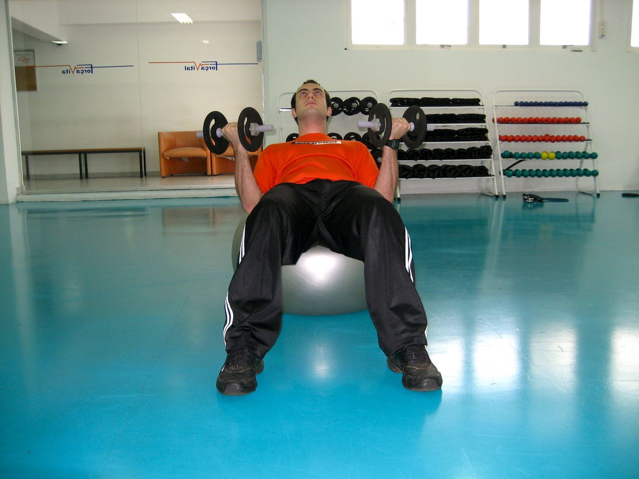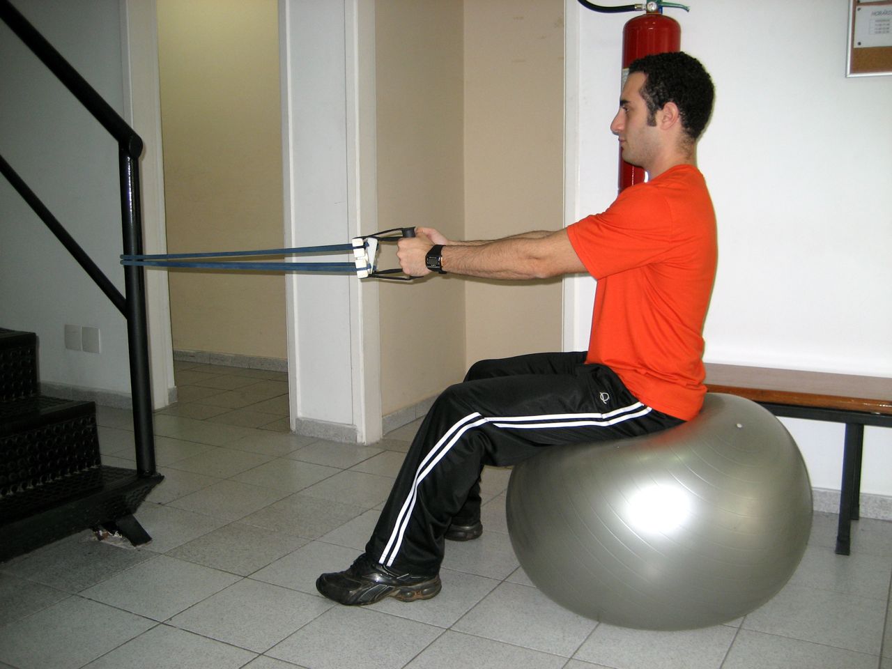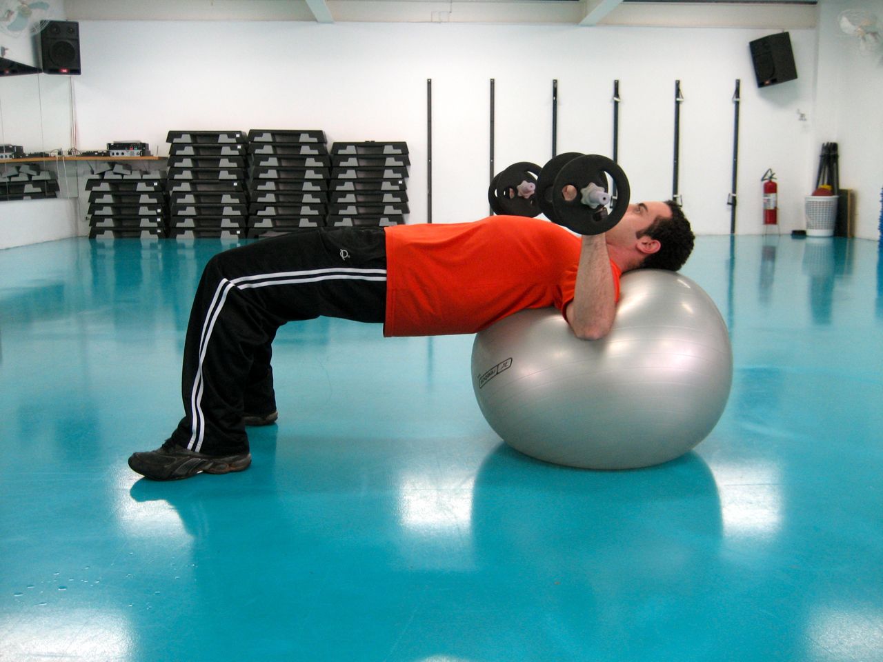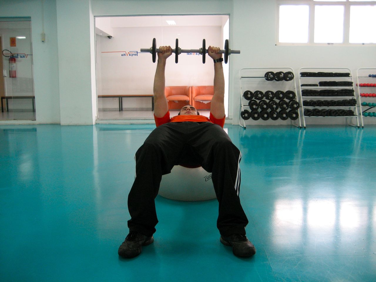 Objetivo: condicionamento e fortalecimento da região frontal do peitoral e braços, atuando também na região do CORE (região abdominal e lombar), devido ao exercício funcional executado quando do equilíbrio na bola.